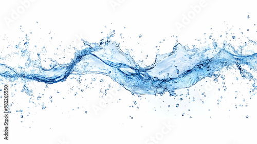 A Splash of Water, a Curved Wave with Droplets, a White Background