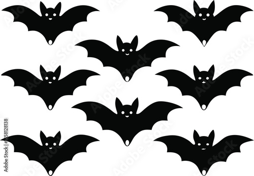 A Spooky Halloween Pattern Featuring Cute Black Bats on a White Background
