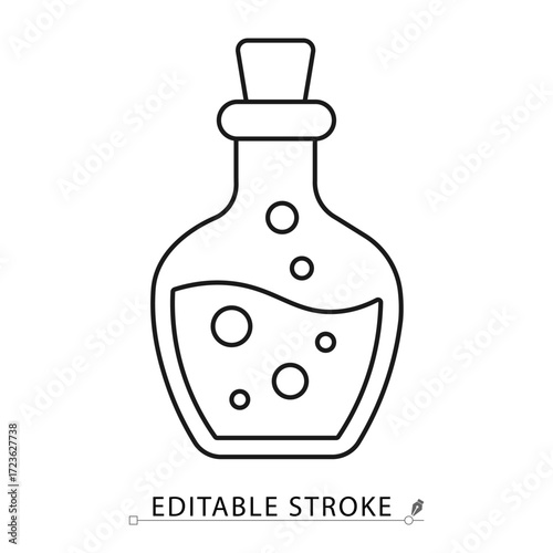 A spooky owl icon in a minimalist line style with editable stroke. Halloween night bird, scary forest predator, mysterious wildlife animal, wisdom symbol, dark magic creature, horror concept.