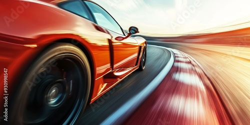 a sports car zooming down a racetrack, with intense speed effects and motion blur capturing the thrill