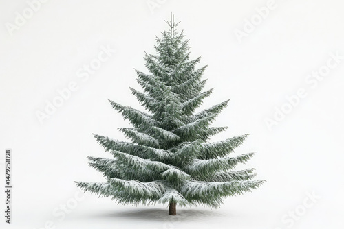 A spruce tree with dense, dark green needles and snow-covered branches