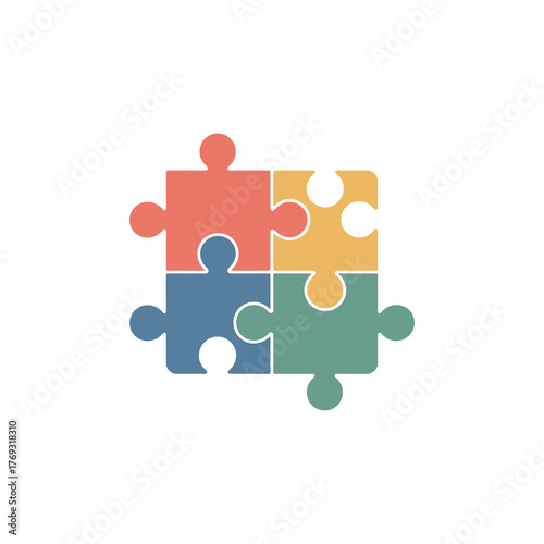 A square formed by four simple colorful interlocking jigsaw puzzle pieces