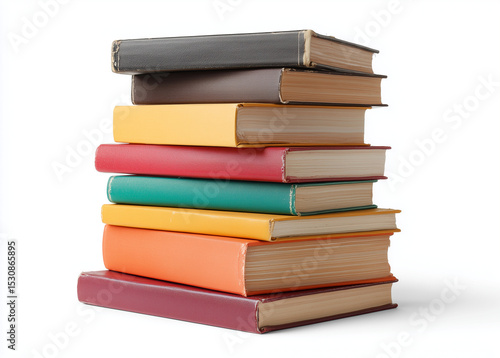 A stack of books with their spines facing upward, symbolizing knowledge and academic success, set against a white background