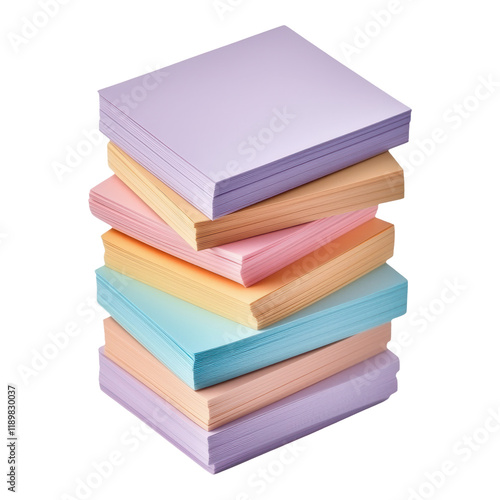 A stack of colorful sticky notes arranged neatly, showcasing various pastel shades and textures.
