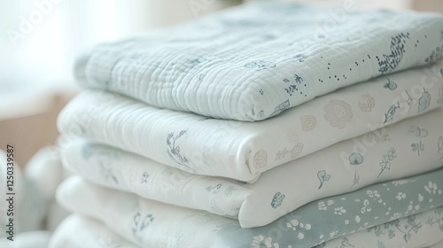 A stack of comfortable cotton fabrics in soft shades ready for baby clothing.