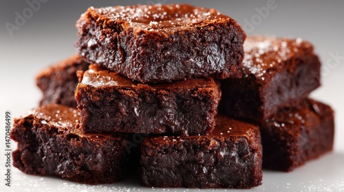 A stack of rich, fudgy chocolate brownies, isolated on a pristine white background