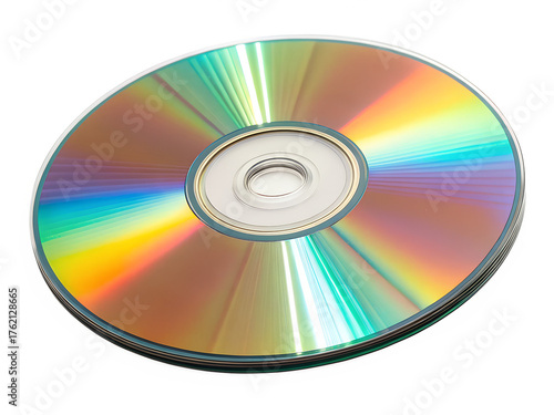 A stack of shiny compact discs reflects vibrant rainbow colors. These circular digital media are isolated on a clean transparent background.