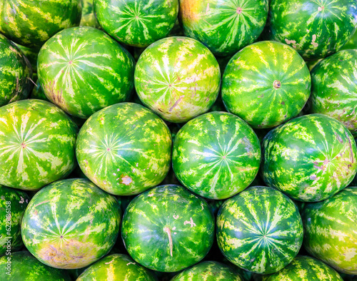 A stack of watermelons at the fruit and vegetable market in Dubai, UAE