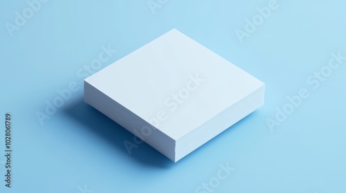 A stack of white paper sheets arranged in a square shape on a light blue background.