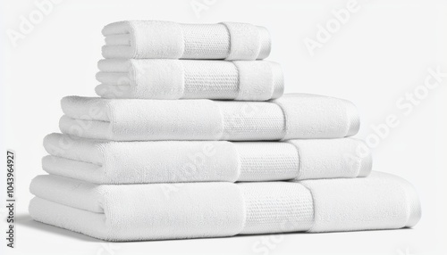 A stack of white towels, neatly folded and isolated on a white background, showing the soft texture and clean edges