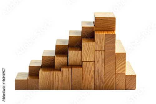 A stack of wooden blocks arranged in a step like pattern on a black background in a studio shot