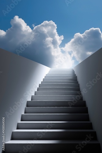 A staircase with a blue sky in the background. The sky is cloudy and the staircase is grey
