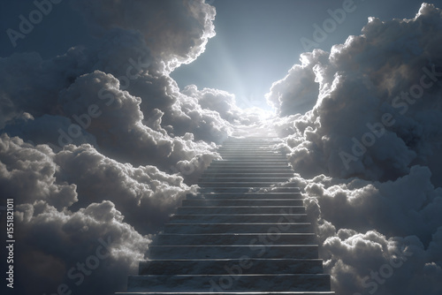 a stairway leading up to a bright sky