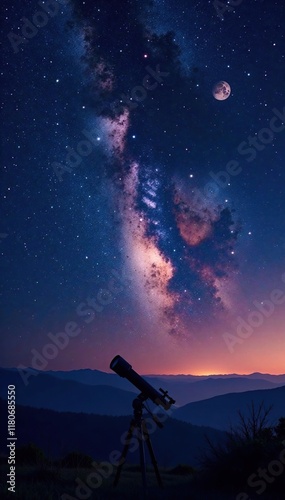 A starry night sky with a few planets and a distant galaxy visible through telescopes, planet, , galaxy