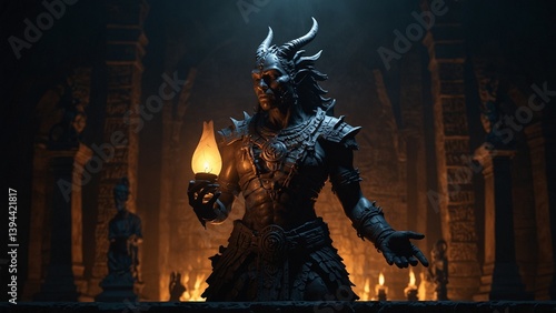 A statue of Phesana, holding a lantern made of beast bones, casting sins in shadowlight