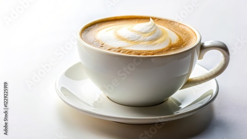 A steaming cup of coffee with a rich creamy texture and thick frothy foam on top