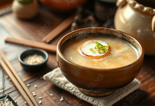 A steaming hot Miso Soup in a traditional Japanese bowl