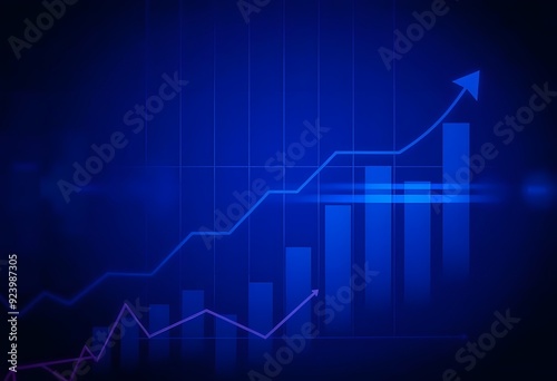A stick graph chart of stock market investment trading with blue bars representing increasing values over time