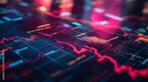 A stock market graph with red and blue lines on a dark background, illustrating a decline.