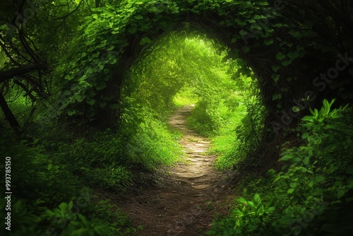 A Stone Path Leads Through a Lush, Green Forest Canopy