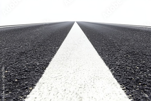 A straight asphalt road with a white line on a plain background