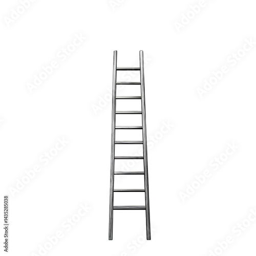 A straight silver aluminum ladder with evenly spaced rungs against a stark black background image scene