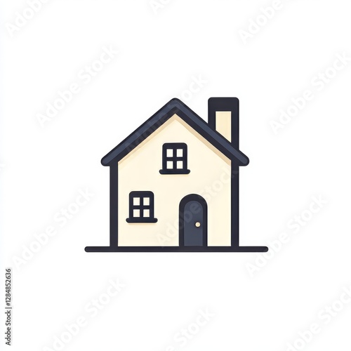 A straightforward house symbol featuring a sloped roof and windows, set against a plain white backdrop