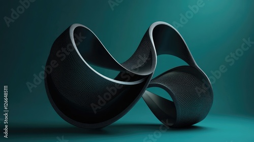 A striking 3D-rendered abstract sculpture with intricate curves and details, illuminated against a deep teal background.