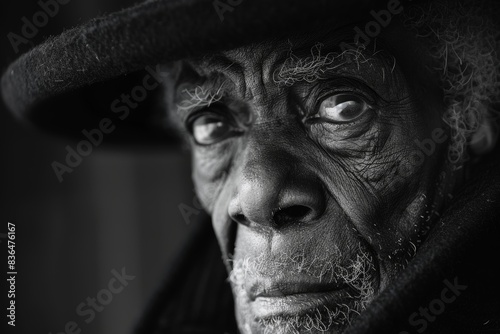 A striking black and white close-up photograph capturing the deep, expressive eyes of an elderly person with wrinkled skin, conveying a mix of wisdom and contemplation