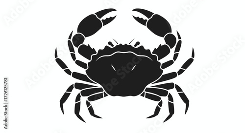 A striking black silhouette of a marine crab, featuring detailed claws and legs, presented as a clean vector graphic on a white background.