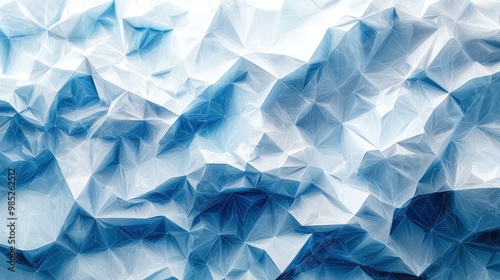 A striking geometric background in a modern palette of white and blue, featuring a mosaic of intricate polygons and intersecting lines. The abstract design provides a visually engaging pattern with
