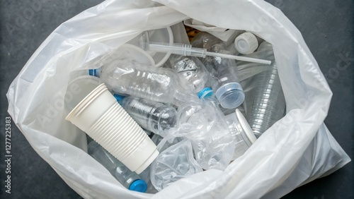 A striking illustration of plastic waste intricately piled up in a natural landscape emphasizing the urgent need for environmental awareness and sustainable practices