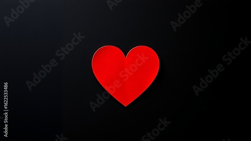 A striking red heart on a textured black background, representing deep emotions and minimalist beauty.