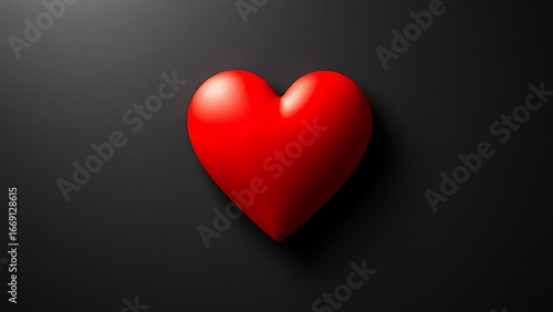 A striking red heart on a textured black background, representing deep emotions and minimalist beauty.