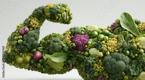 A striking representation of strength is displayed through a bicep crafted from an array of colorful vegetables
