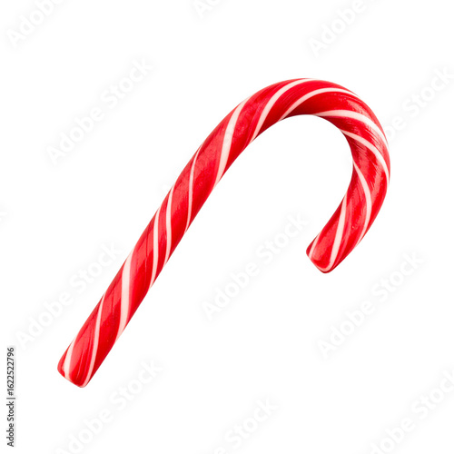 a striped red and white candy cane for a food-themed, photorealistic illustration in a PNG format, cutout, and isolated: generative a