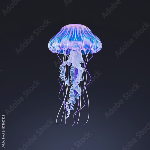 A stunning 3D illustration of a glowing jellyfish floating in a dark underwater scene, featuring intricate tentacles and a bioluminescent effect, perfect for ocean and marine life themes.