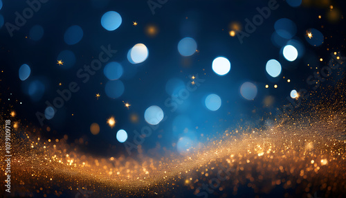 A stunning abstract composition featuring gold and blue bokeh effects with sparkling stars. Ideal for festive backgrounds, celebrations, and elegant designs.