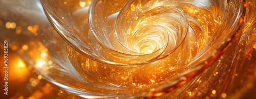 A stunning abstract swirl of golden hues, creating a mesmerizing visual of light and motion, perfect for backgrounds or artistic projects.