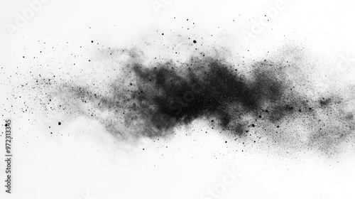 A stunning black powder explosion on a white background, creating an ethereal and abstract cloud of motion.