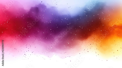 A stunning blend of vibrant colors in an abstract watercolor style, featuring shades of red, purple, orange, and blue with scattered white dots.