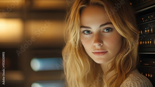 A stunning blonde woman looks at the camera, exuding confidence and charm.