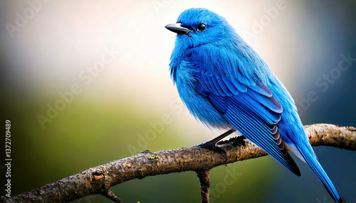 A stunning blue bird rests on a tree branch