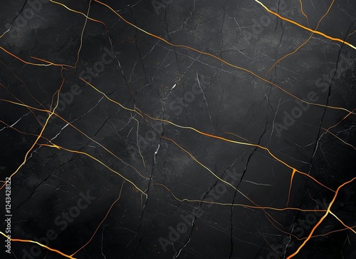 A stunning close-up of a black marble surface featuring intricate golden veins