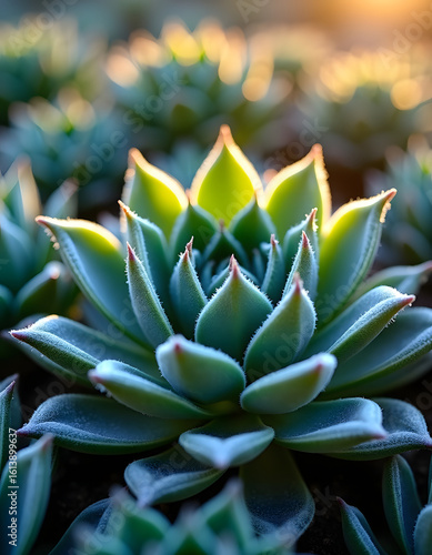 A stunning close-up of a lush, green succulent basking in soft sunlight.