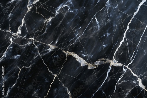 A stunning close-up of black marble with striking white and gold veining, exuding elegance and sophistication.