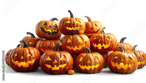 A stunning collection of Jack-O-Lanterns, showcasing different artistic carvings. This vibrant, detailed PNG mockup is perfect for creative Halloween designs, providing a crisp, transparent cutout for
