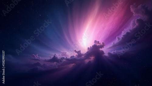 A stunning cosmic nebula scene with deep purple, blue, and pink hues, sparkling stars