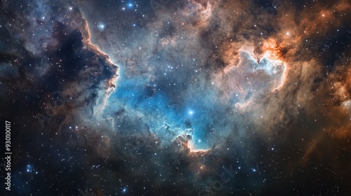 A stunning cosmic nebula showcasing vibrant colors and star formations in space.