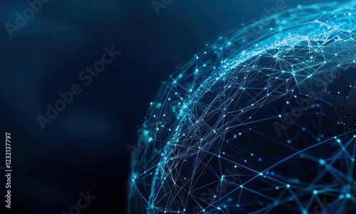 A stunning deep blue background featuring an interconnecting globe design, showcasing network connections in a futuristic and digital style.